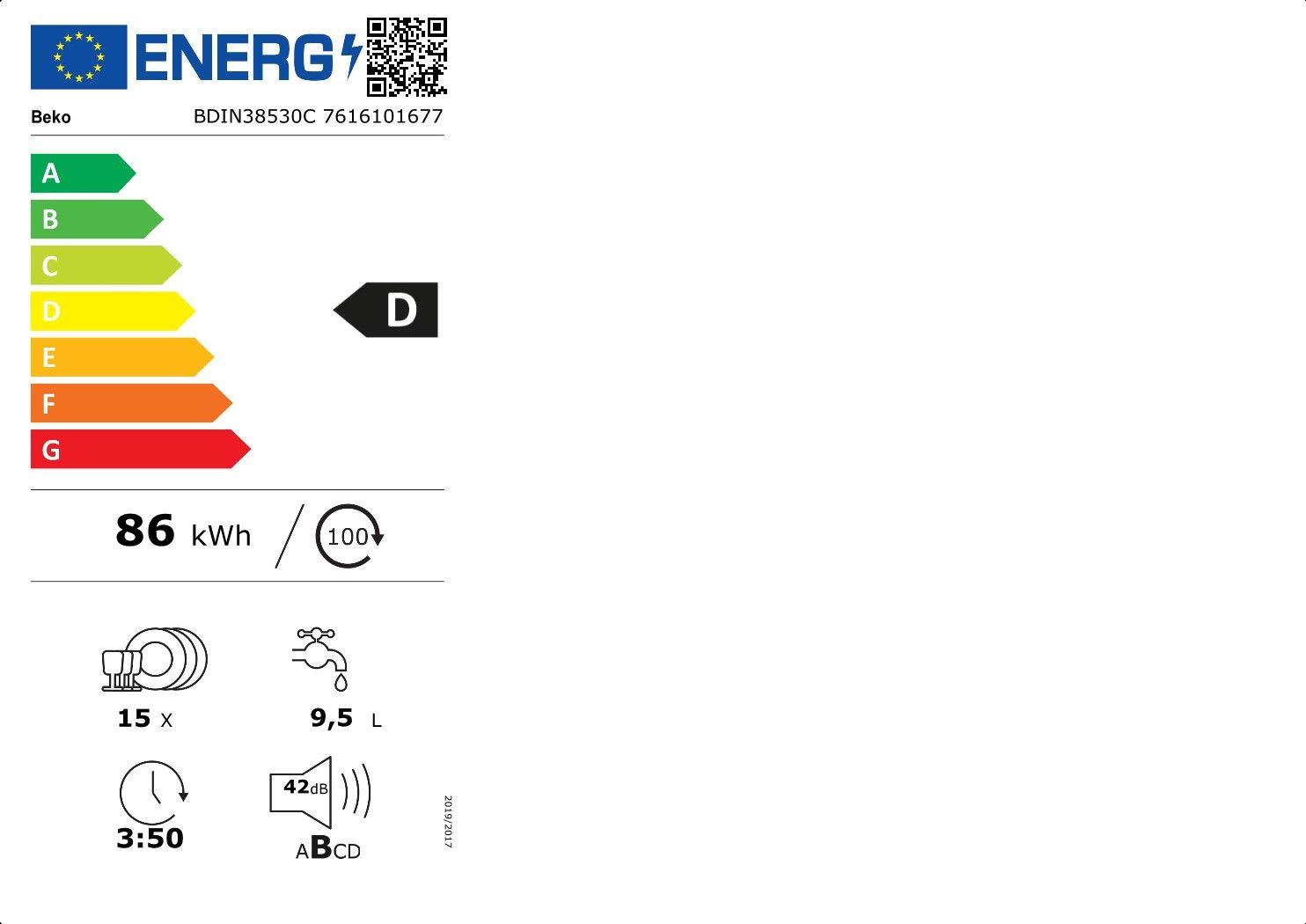Geschirrspüler: Beko BDIN38430C , Energie-Effizienz-Klasse D (Skala A-G)