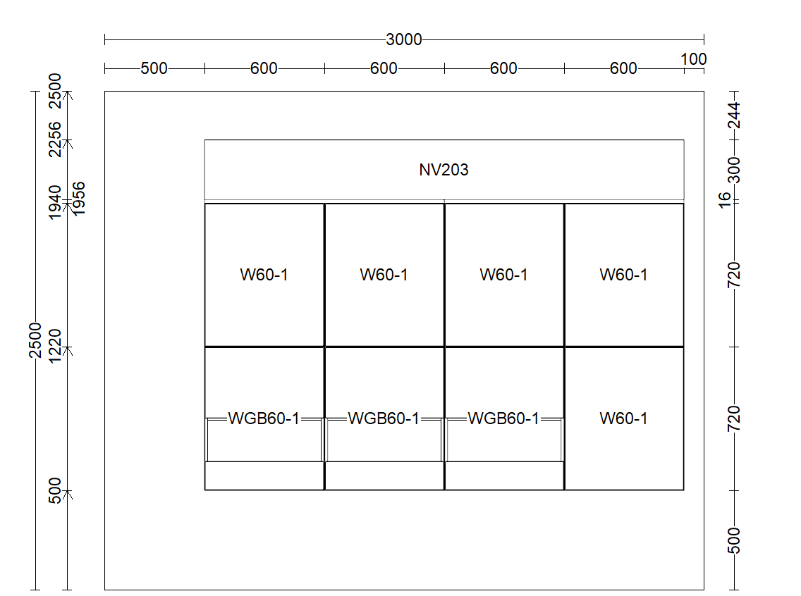 jeder Schrank ist 60 cm breit und 72 cm hoch